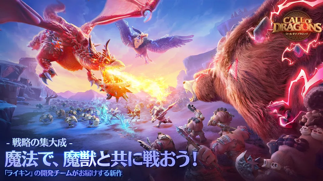 「コール オブ ドラゴンズ」はリアルタイム戦略、ビヒモス、PvP、ヒーロー育成、同盟協力…あらゆる要素が詰まった超楽しいタイトルです!多彩な戦術と育成、仲間との連携が無限の可能性を生み出すこのゲーム、ぜひあなたも壮大な世界でドラゴンズコールに応えましょう!
